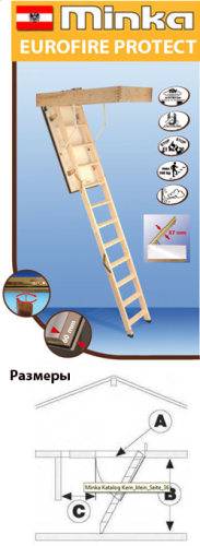 Огнестойкая деревянная чердачная лестница MINKA Eurofire Protect 1956290