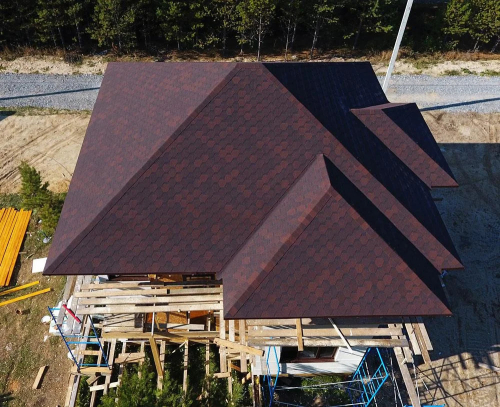 Для четырехскатной крыши выбрал мягкую кровлю. По рекомендациям коллег, материал купил в магазине Кровлягруп. Здесь большой выбор кровельного материала. Доставка прошла без задержки.